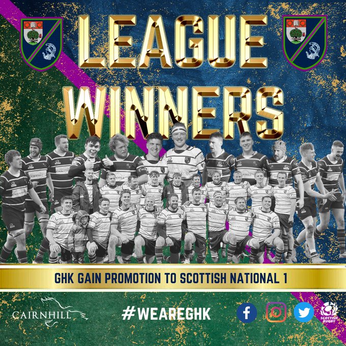 As we build our ‘One Club’ approach at GHK, there is much of which we can be proud. On Saturday our GHK/GU Students XV clinched the West Regional Reserve League 3 North earning promotion to League 2 to go with the West of Scotland Regional Shield trophy secured by our U-18 squad the previous weekend. The future is, indeed, bright at Old Anniesland!