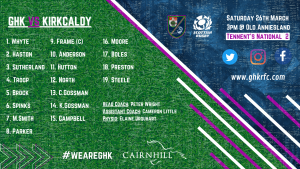 GHK 96 – 28 Kirkcaldy RFC 26th March 2022 Match Report