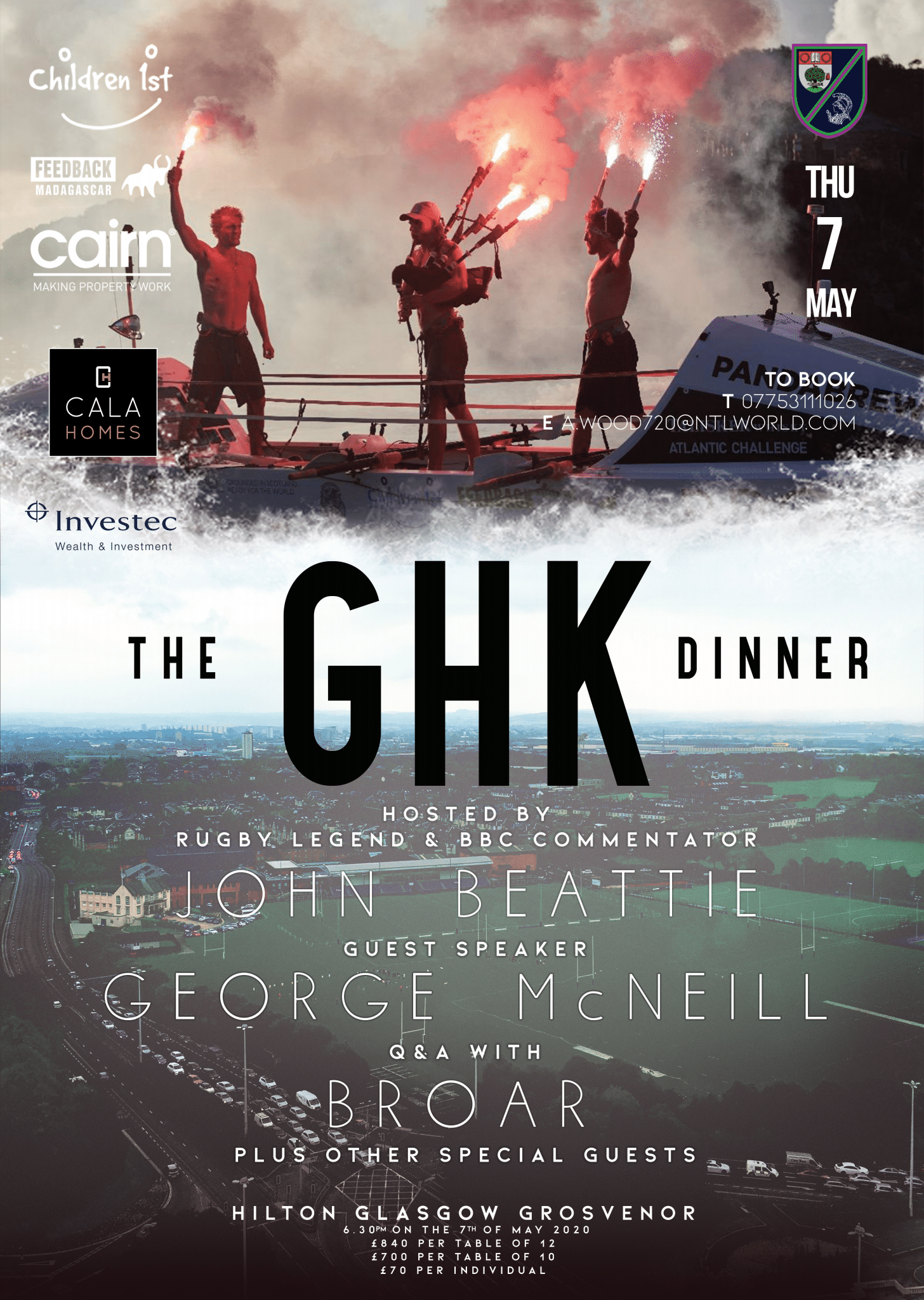 GHK’s Annual Dinner has, of course, had to be postponed with a new date of WEDNESDAY 7th OCTOBER.