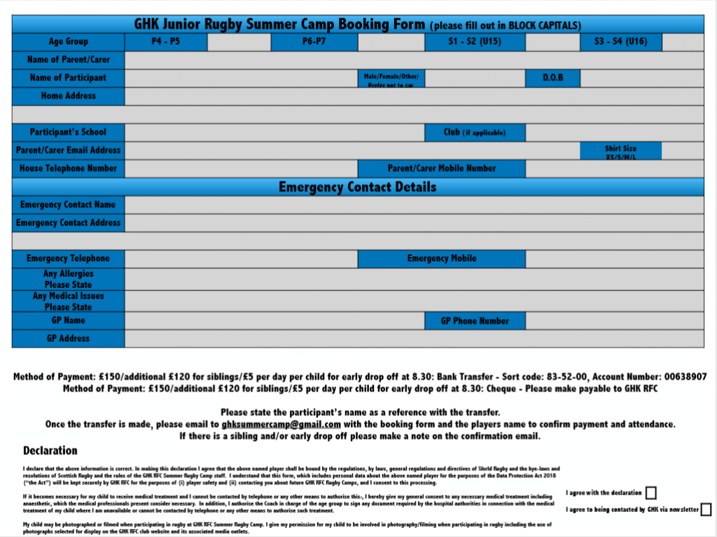 GHK’s Summer Rugby Camp is next week! To book your place – by Wednesday 31st July at the latest – use the booking form here: