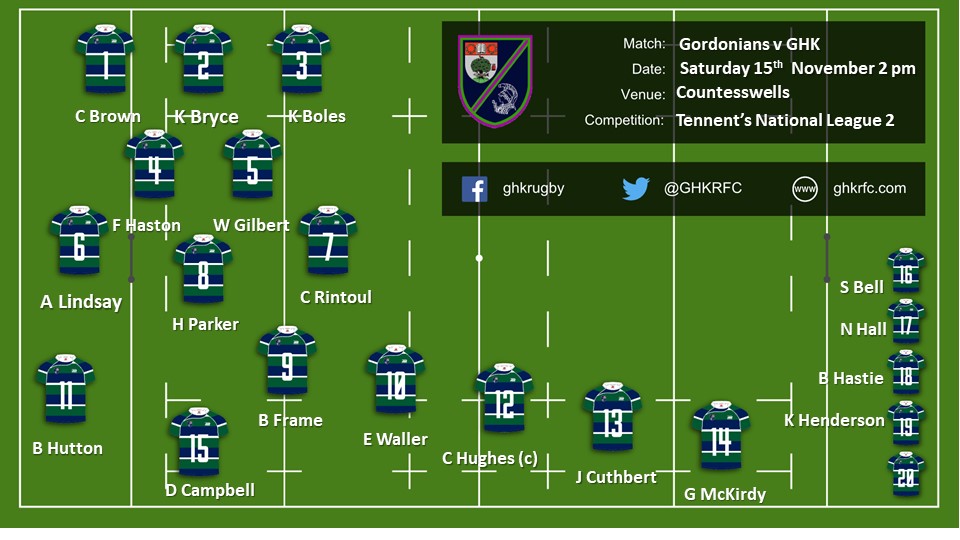 The GHK 1st XV to play Gordonians tomorrow, Saturday 16th November, kick off 2pm at Countesswells is as below. For those unable to make the long journey north, both the GHK 2nd XV and GHK Students XV have home league matches at Old Anniesland against Ayr and Clydebank respectively.