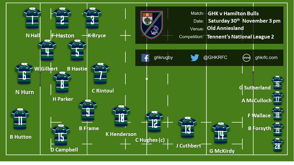 The GHK 1st XV to play Hamilton Bulls on Saturday 30th November at Old Anniesland, kick off 3 pm :