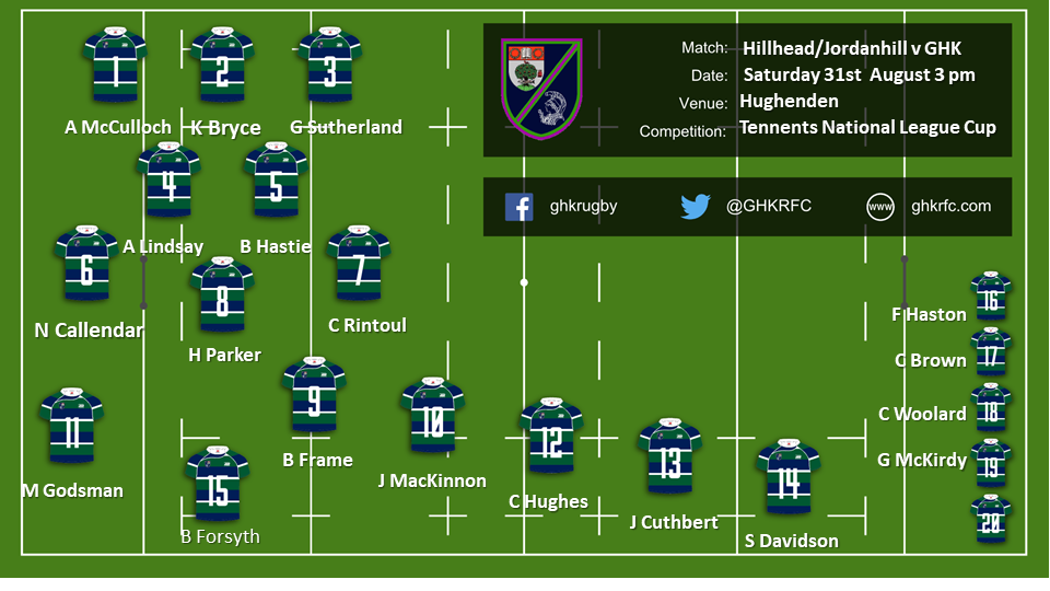 The GHK team to play Hillhead Jordanhill RFC at Hughenden tomorrow, Saturday 31 August, kick off 3 pm.