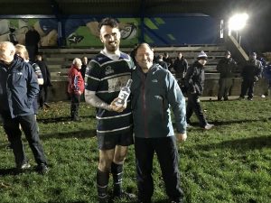 One more chance was to come GHK’s way as the referee lost patience with the home side’s defensive efforts and produced a yellow card awarding a kickable penalty to GHK. No kick at this stage of a match is straightforward particularly when you know you didn’t make a good job of your previous attempt but ‘Come the hour, come the man’ and up stepped Mr Forsyth to slot the winning kick. ‘Never in doubt’ as the man himself put it!