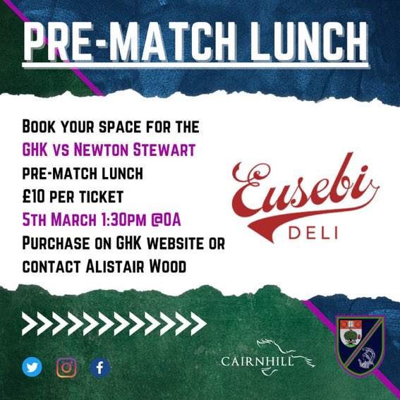 Join us this Saturday the 5th March for our pre-match lunch before GHK tuck into Newton Stewart. ?