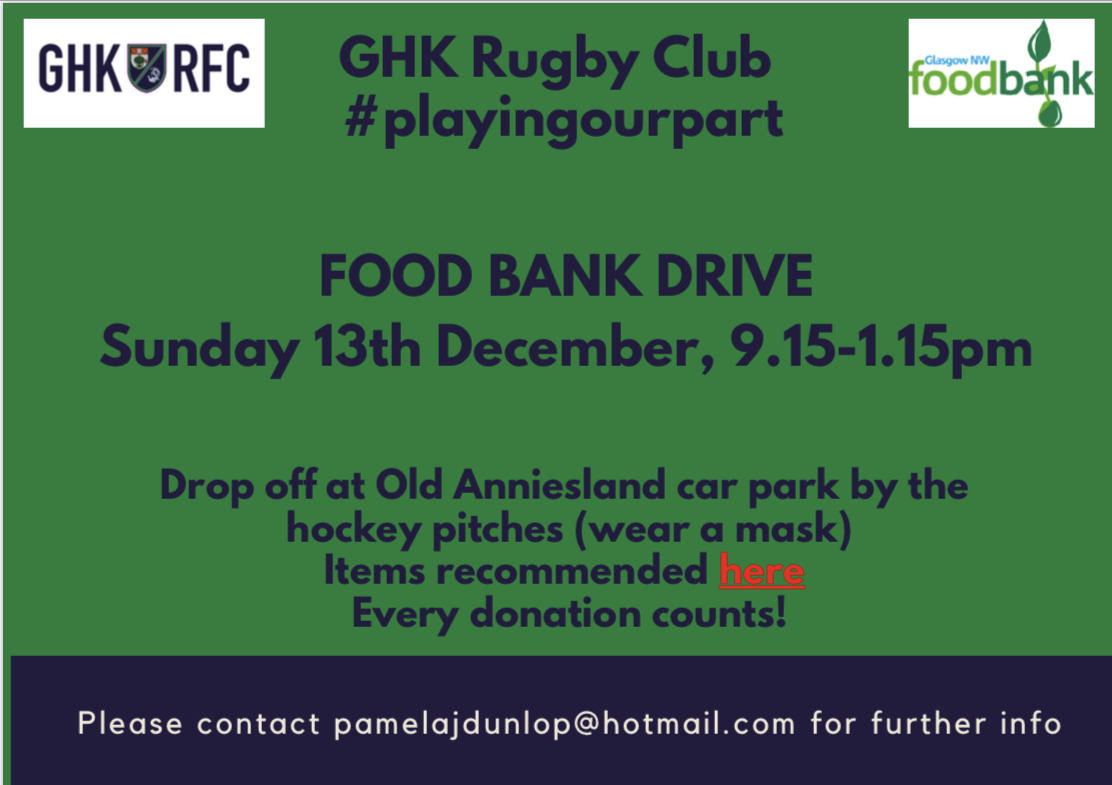 Not a misspelt one-sided rugby match but the amazing weight of goods GHK gathered as the club again demonstrated its sense of community at the weekend through their partnership with Glasgow North West Foodbank.
