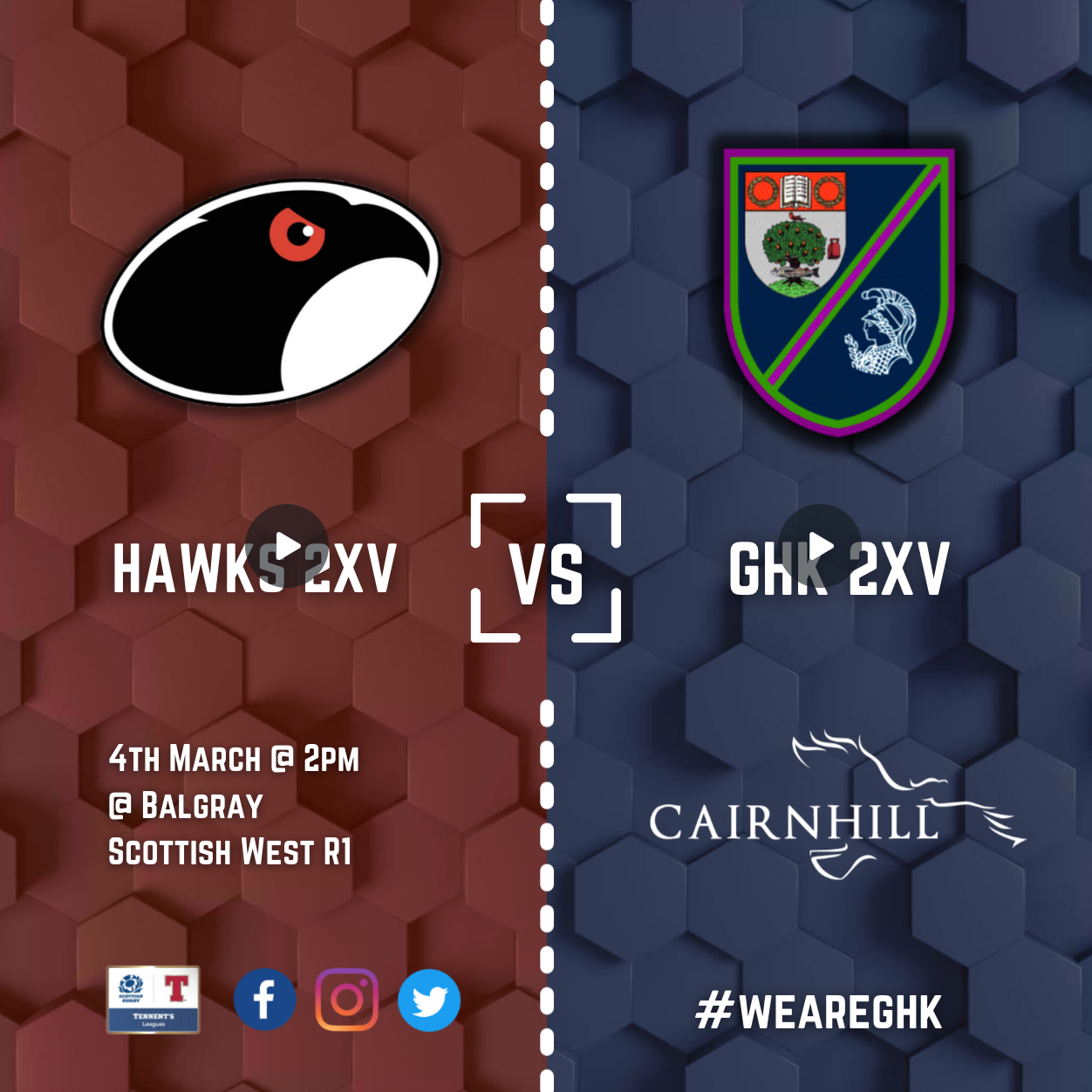 Please note that the 2xv game against Hawks will be played at Nethercraigs and not Balgray as originally stated.